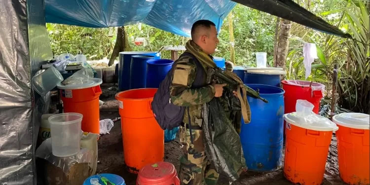 AMAZONAS: The police personnel demolished a mega cocaine processing laboratory in the Amazonian district of Nieva. Within the facility, located in the Nueva Unida village, approximately 1,452 kilograms of cocaine in solution were found. The site consisted of three rustic areas: a kitchen, a sleeping area, and a processing area. Furthermore, a woman named Gloria Huamán Tongo was apprehended.