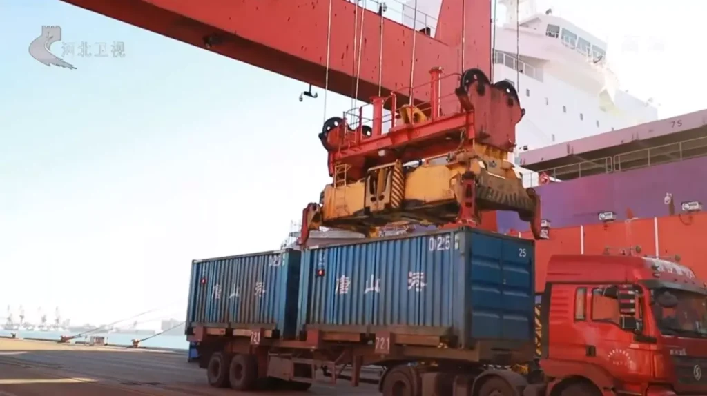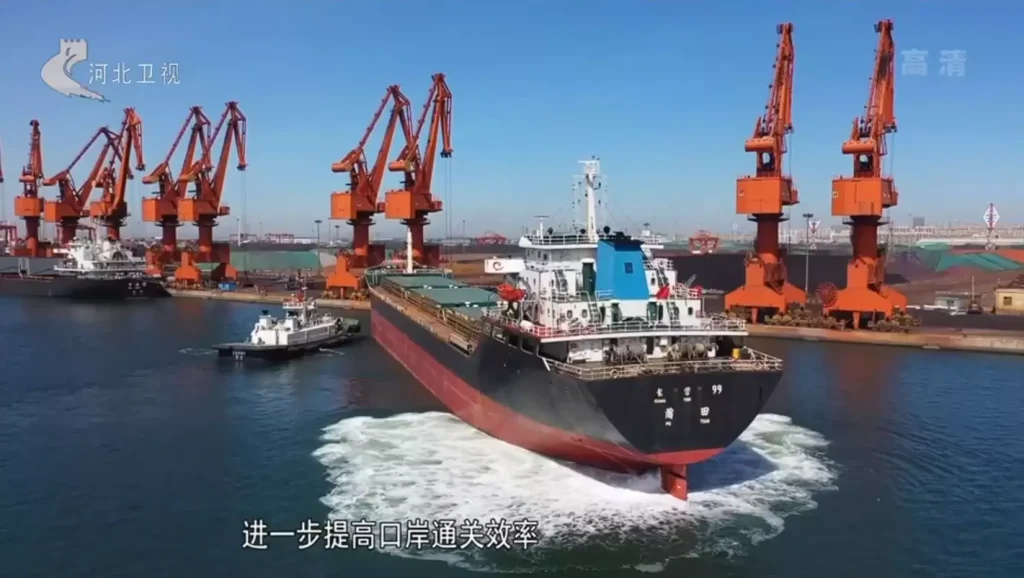 On April 25, 2023, a batch of 47,900 tons of ammonium sulfate fertilizer destined for Brazil was being loaded onto a cargo ship by staff in the Jingtang Port area of Tangshan Port under the supervision mode of “arrival direct loading” implemented by Jingtang Port Customs.